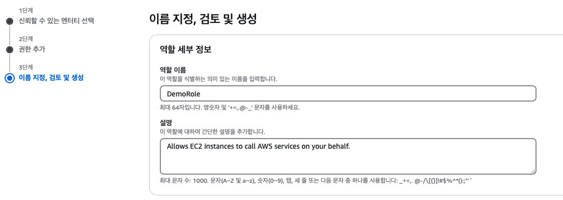 역할의 이름을 지정하고 선택한 권한에 대한 내용을 확인 및 수정하고 마무리가 되면 생성을 완료한다.